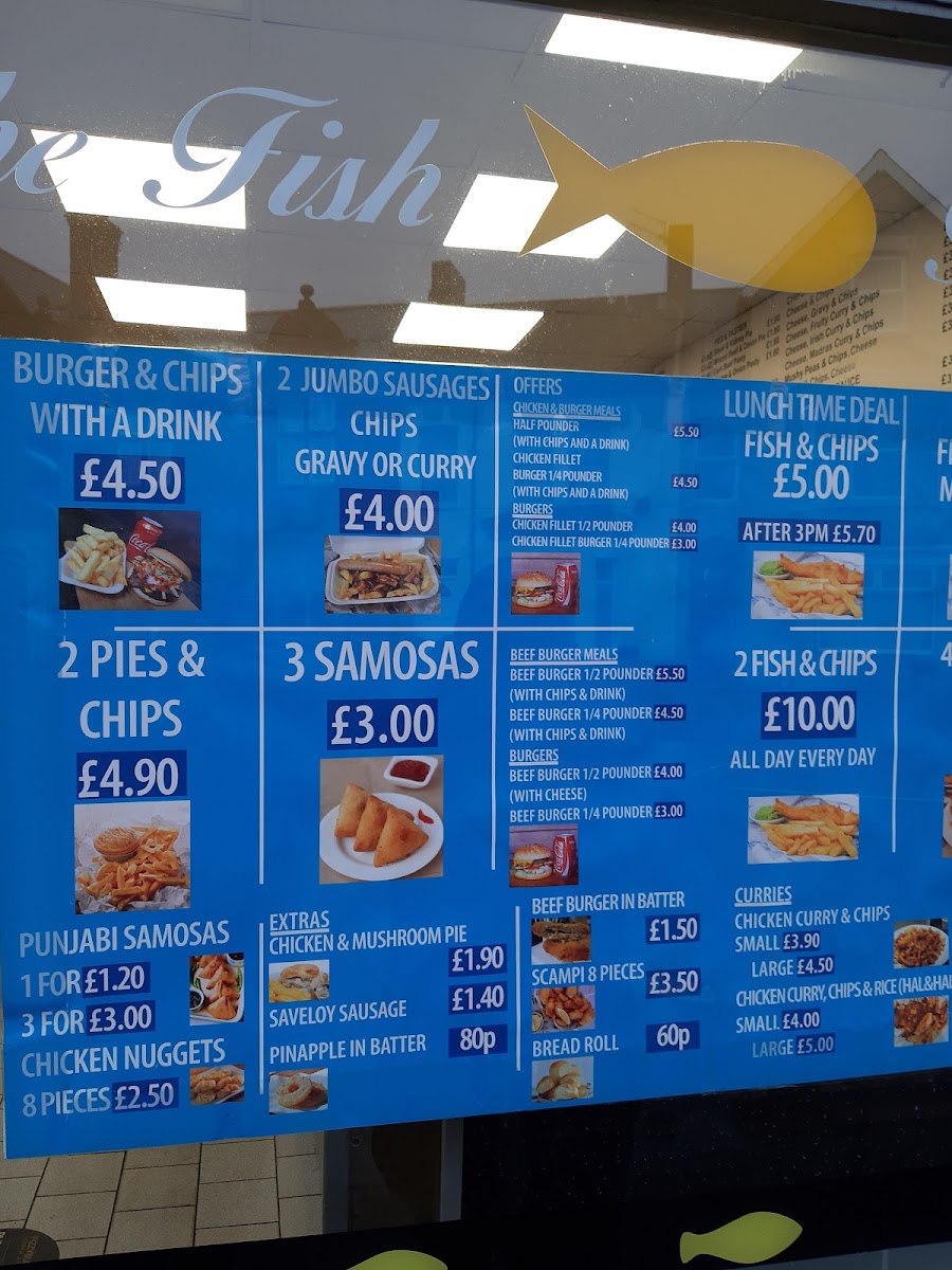 - Fish & Chips: Classic cod, haddock, plaice, and hake served with chips